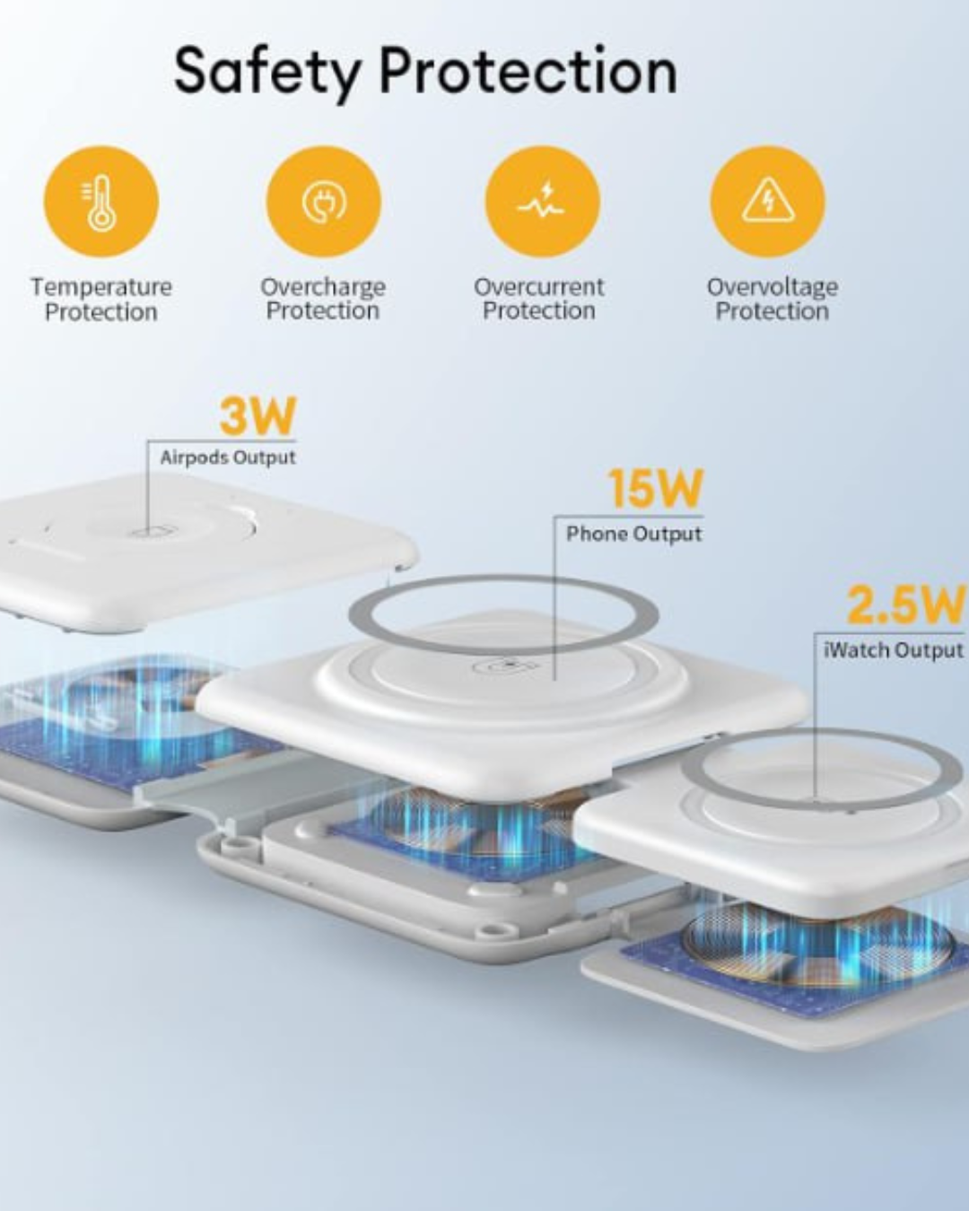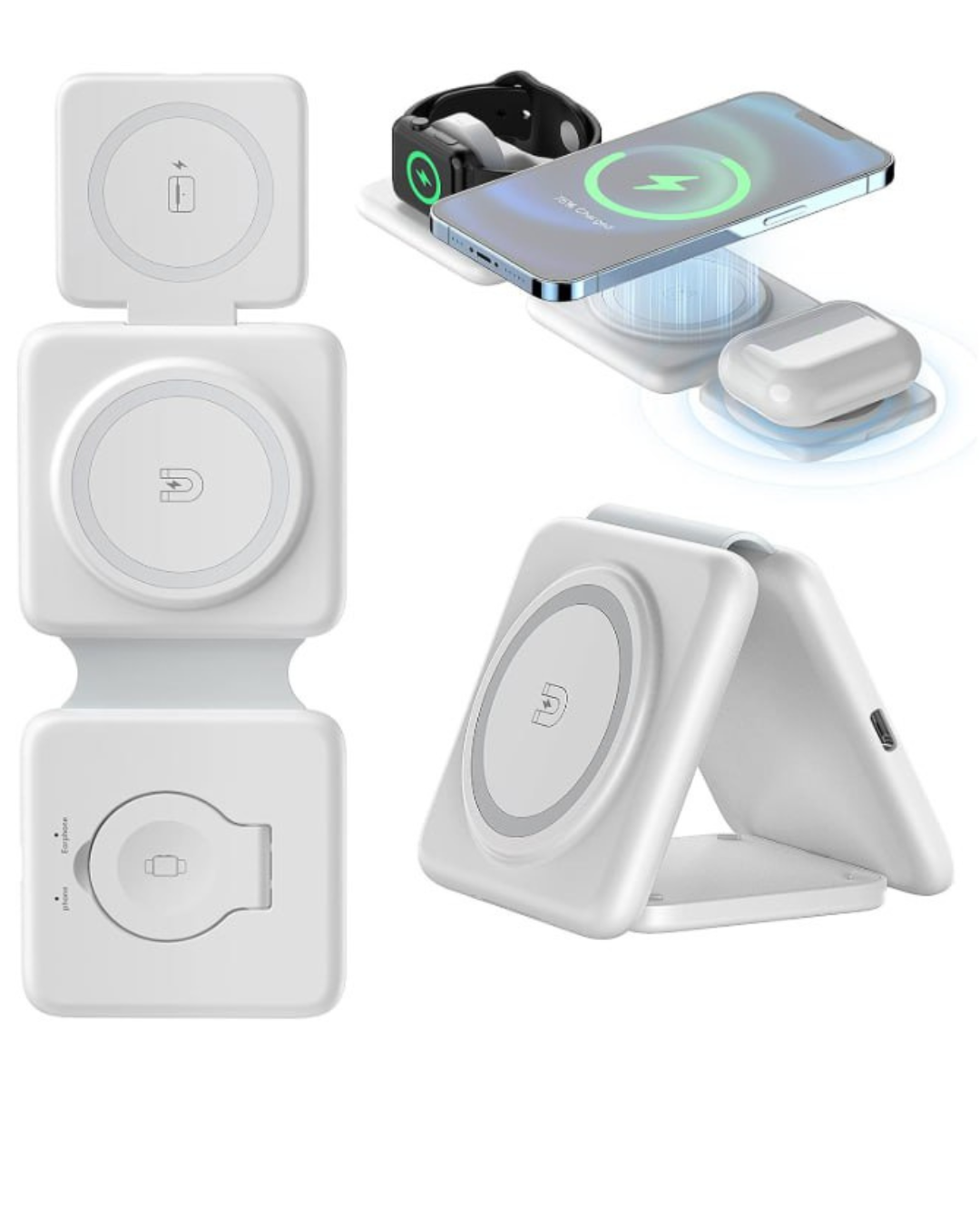 Con el Cargador Inalámbrico 3 en 1, simplificas tu rutina diaria: menos enchufes, menos tiempo perdido y más orden en tu escritorio o mesa de noche. Un solo cargador reemplaza varios cables y adaptadores. Tu espacio se ve más limpio, moderno y organizado, perfecto para home office o dormitorio.